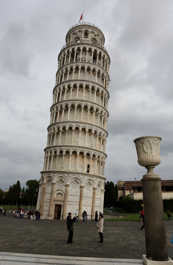 Last week, we made the decision to leave Argegno a couple of days early. The forecast was for rain through the weekend and we were both feeling eager to explore new territory. Rather than taking a straight shot to Sicily, we wanted to poke through Tuscany, Umbria, and also the eastern part of Italy along the Adriatic coastline. The purpose was see more of Italy, and to scout towns and apartments for our November-December weeks. The first leg of the trip zigged us west, through Genova and Pisa. We’d heard that Pisa was not that appealing, but somehow that leaning tower beckoned us…it may have been the first (or only) thing they taught in grade school about Italy and the intrigue stuck. OK, so now we know it’s true, Pisa kind of sucks, but the tower itself really is cool, actually very pretty. The place was teeming with tourist groups of every nationality, a great number of them busy posing for dorky pictures, arms up to the side, pretending to hold up the tower. We maintained our dignity, and did not do that.
