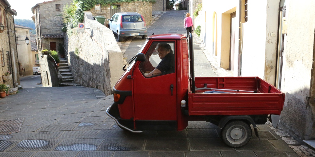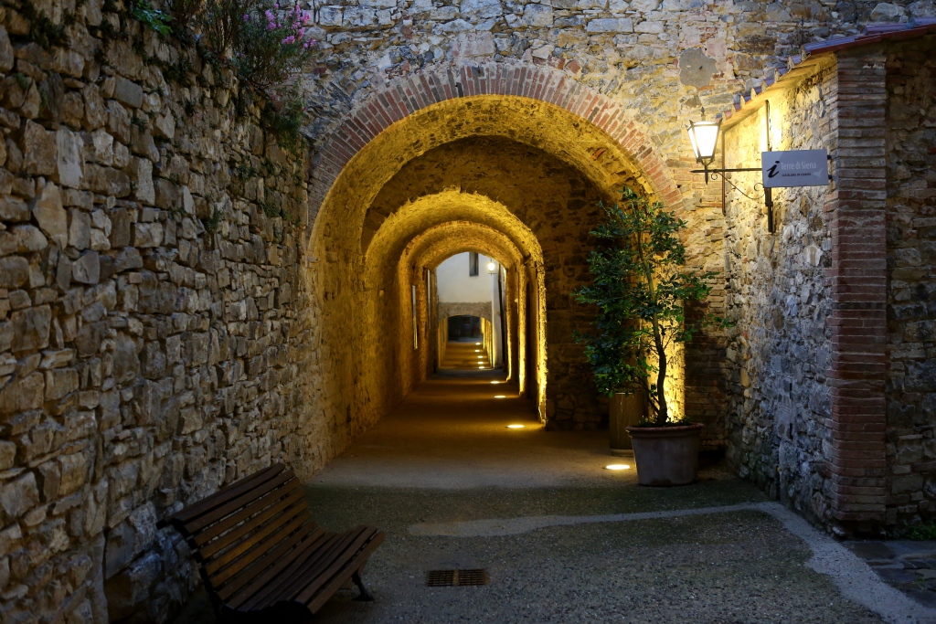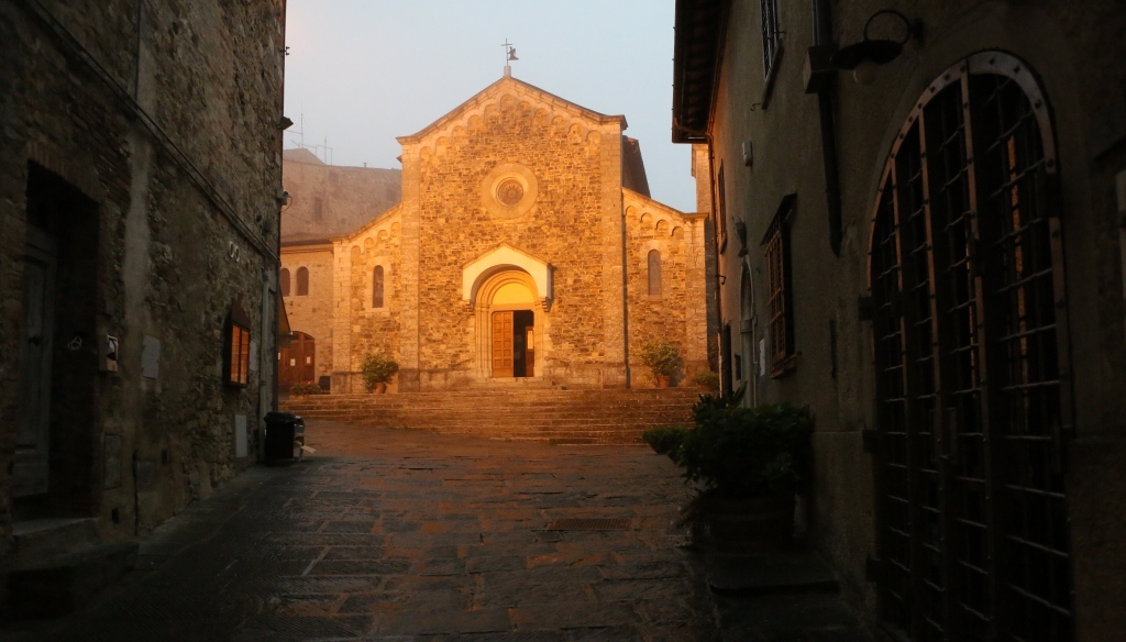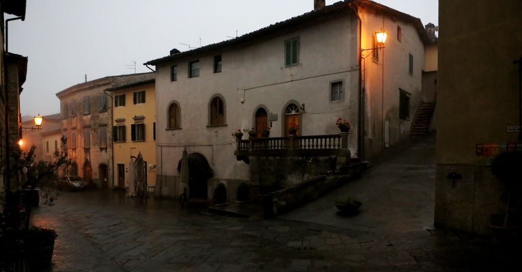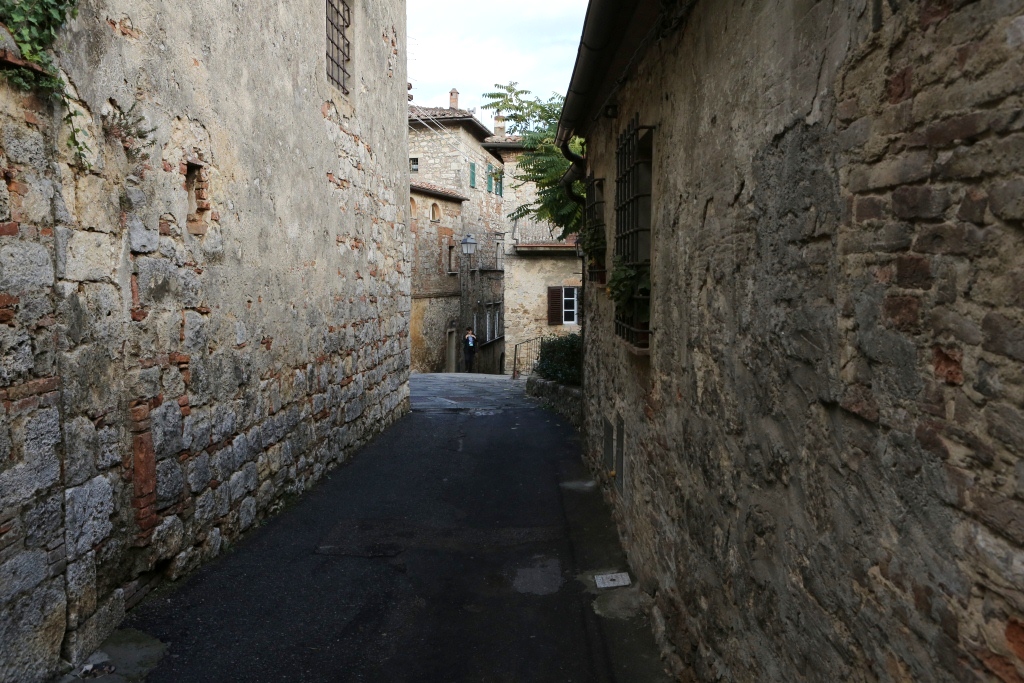 We drove on to Castellina in Chianti for the night, arriving after dark, and were fortunate to find a lovely hotel in the hill town’s old center, Palazzo xxxxxxx. Things were pretty quiet, but there was a lively restaurant on the piazza, and we had a really, really good meal with some really, really good Chianti. Both cuisine and wine appear to improve as one heads south in Italy!