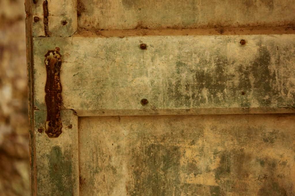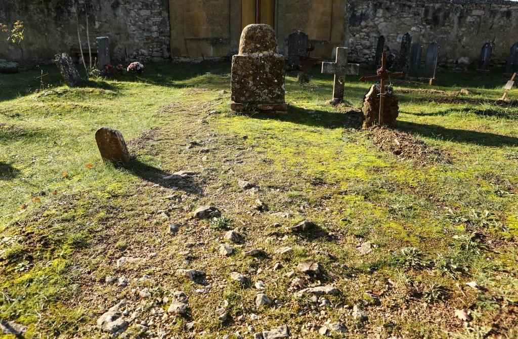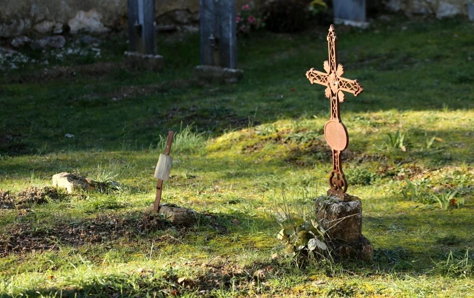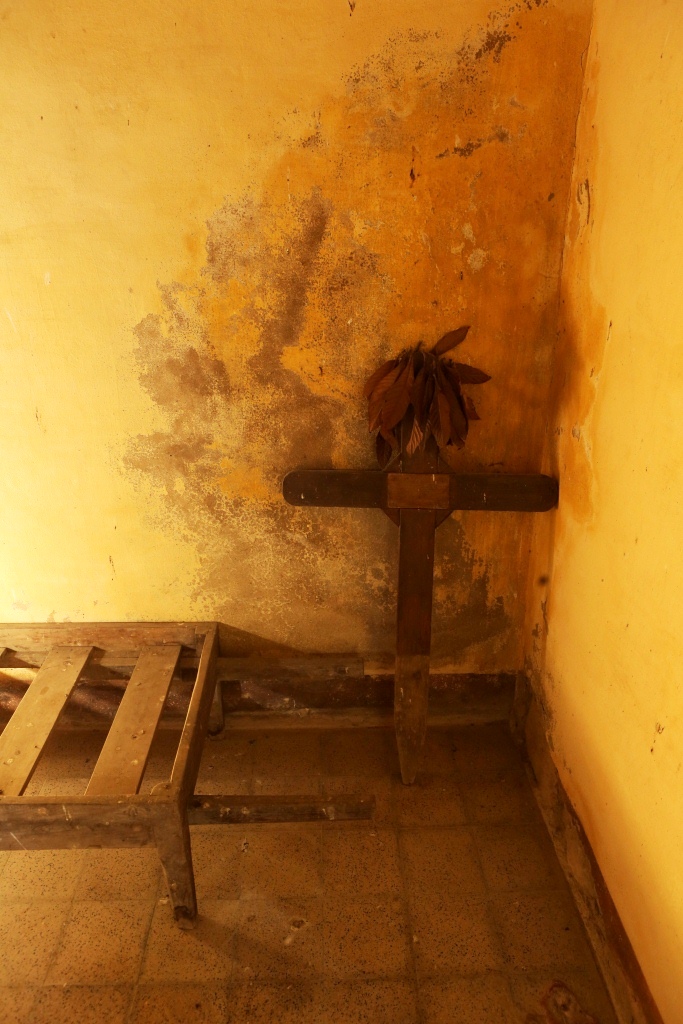Inside the small chapels was the rack for carrying coffins and a cross propped in the well weathered corner.