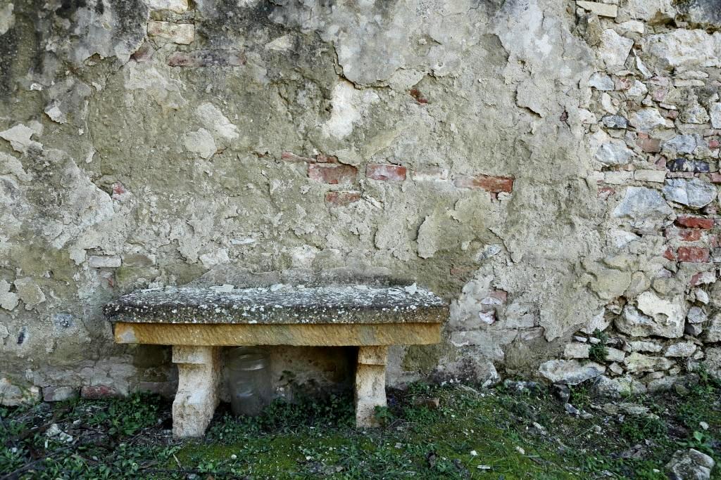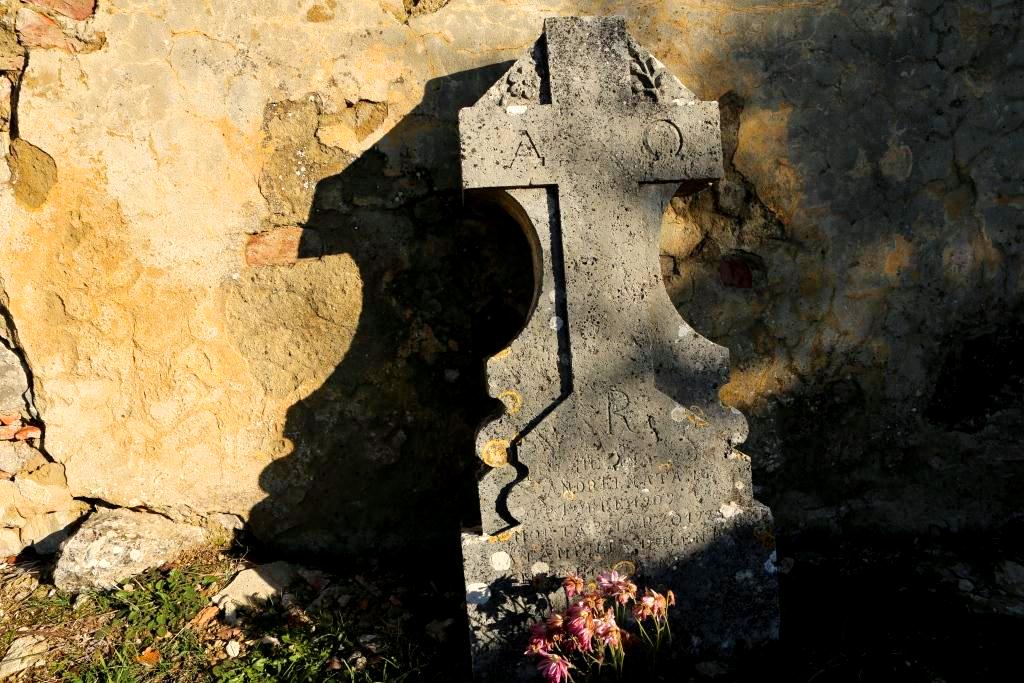 There is a small church, S Anna in Camprena, out in the middle of the woods at the end of a dirt road. It is closed this time of year but is quite beautiful and with nobody around the setting is idyllic. I wandered into the little walled cemetery and wondered who still put flowers on the graves there. The writing on the markers was long gone but some one still tended the place.