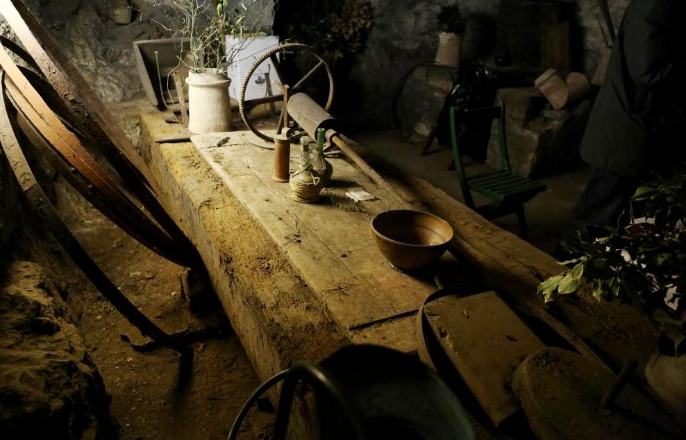The wall surface was disintegrating and falling onto the bench surface.