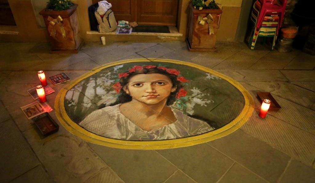 You don’t see this as much as when we first came to Italy 25 years ago. This is chalk drawn sidewalk art that is done for donations.